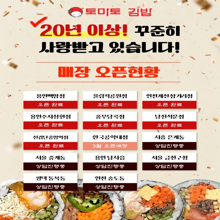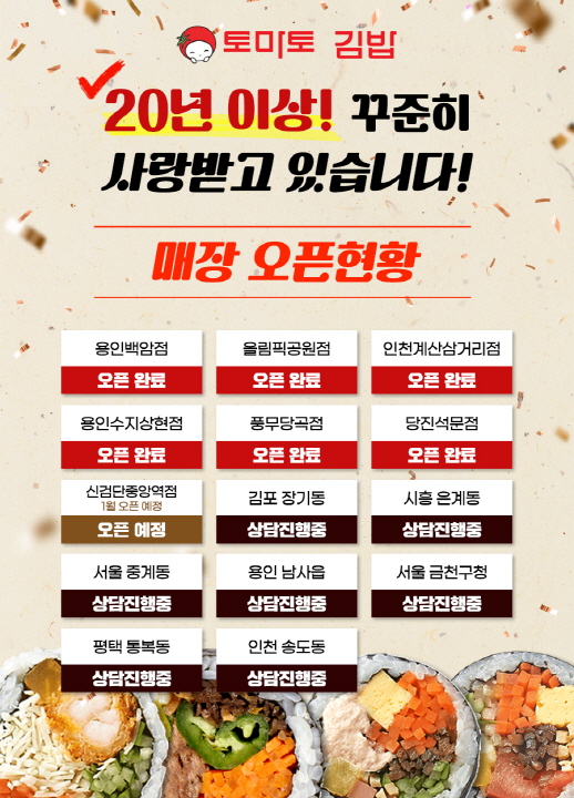 부를 제공받고 있습니다. 토마토김밥에 창업문의와 고객의소리